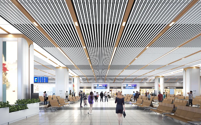 工程规模和特点:主站房建筑面积约22.56万平方米,站厅设于负一层、站台位于负二层,车站总规模6台14线。内装设计以“地下门户,岭南新韵”。高铁站房多为大跨度钢结构,管线需在网架、桁架内密集排布,同时要满足候车厅、通道等区域的最低净高要求,这对管线综合布置提出极高挑战。在施工前,将所有专业的管线在三维模型中整合,提前解决碰撞问题,优化路由,实现“零碰撞”施工,节省材料和工期。